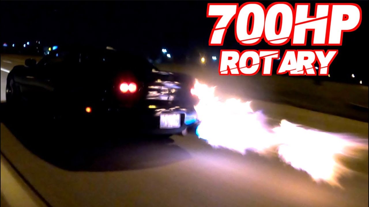 700HP RX7 10,000RPM on the Street - Rotary FLAMETHROWER (Shoots 5 Foot Fireballs!)